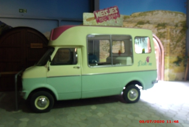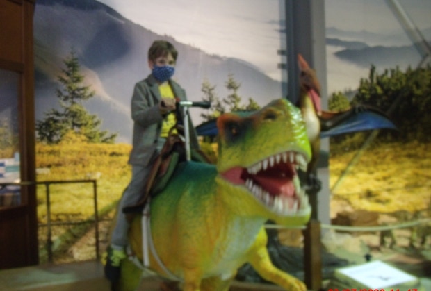 Noch im Eingangsbereich ist es ein Gebäude, mit links interessanten Dino-Figuren in etwa Lebensgröße oder möglicherweise maßstabsgetreu etwas kleiner. Die Figuren bewegen sich, machen realistische Geräusche - und begeistern an dem Tag nicht nur unsere jüngeren Kinder. Dinosaurier faszinieren einfach. Und wenn sie dabei nicht fürchterlich echt sind, wie bei der Vision der Jurassic-Park-Geschichte im Kino, kann man das gut genießen. Ein alter Eiswagen zeigt mir, dass ohne Corona vermutlich noch weitere Attraktionen diesen Park zum Ereignis machen…