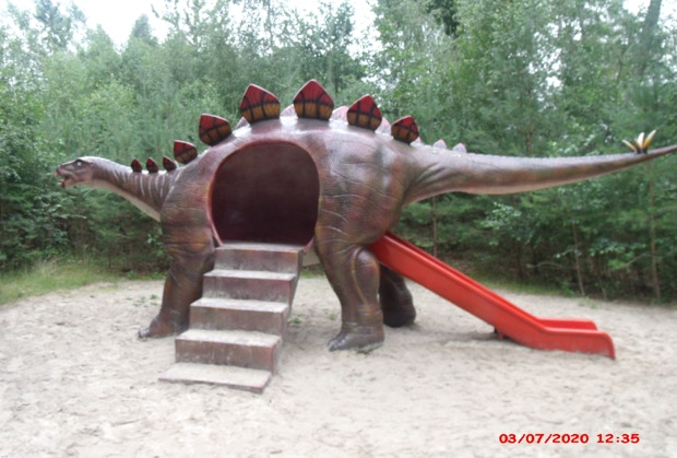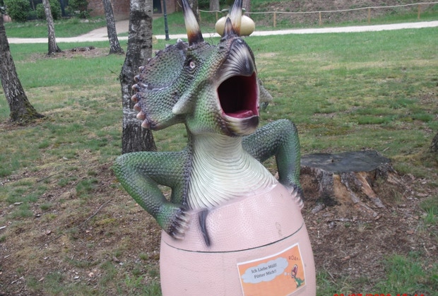 Abwechselnd zeichnet sich die gesamte Anlage dadurch aus, dass nicht nur Dinosaurier, einzeln oder in Herden zur Ansicht einladen, sondern auch das Spielplätze, Klettermöglichkeiten und Tiergehege vorhanden sind. Besonders schön und angenehm fällt mir auf, dass viele Sitzmöglichkeiten - in Form z.B. von liegenden Dinosauriern - auch etwaige Großeltern zum Verweilen einladen. Im regelmäßigen Abstand stehen auch Müllbehälter bereit, die wie „hungrige“ Dinosaurier gestaltet sind. Sowohl für die Gestaltung, den Komfort, als auch für die Nachhaltigkeit, gibt es für den Dino-Zoo in Metelen die nächsten drei Pluspunkte von uns.