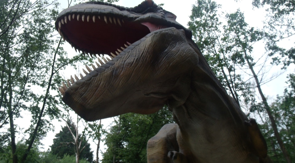 Früher soll der Dino-Zoo ein Vogelpark gewesen sein. Das kann ich mir gut vorstellen, auch bei der ganzen Vegetation und Fläche. Wir haben Glück, es ist schönes Wetter. Nicht zu warm, kein Schauer. Optimal, den Park zu „erobern“.